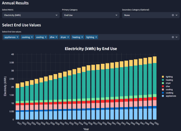 - Support for analyzing key decarbonization strategies, including energy efficiency, electrification, and demand response